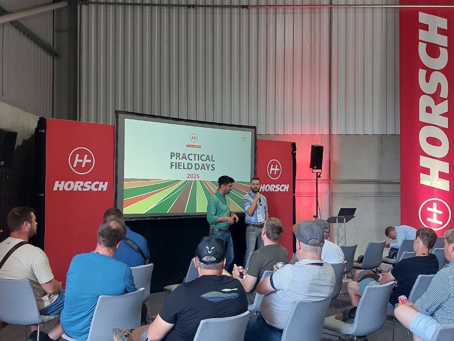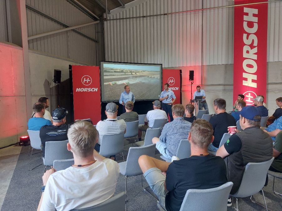 Po prohlídce porostů pšenice jsme se vrátili do sídla společnosti P.X. Farms, kde měl připravenou prezentaci Konstantin Horsch. V HORSCH se dlouhodobě zabývají problematikou rovnoměrného vzcházení. Po sklizni je potřeba jet při přípravě velmi mělce, aby nám vzklíčil výdrol a plevele. Proto vznikl kombinovaný stroj s disky bez pěchu a zadním striegelem, Cultro CC. Cultro slámu krásně smíchá se zeminou, směs je pak těžší a lépe se rozprostírá, druhý přejezd pak následuje radličkovým kypřičem Cruiserem cca do 10 cm.
