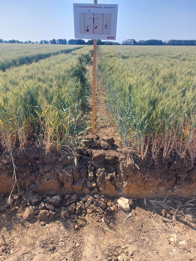 Co se potravinářské pšenice týče, pěstují zde dvě odrůdy. Z důvodu klimatických podmínek, které zde panují, je potřeba aplikovat 4-5 fungicidů. Nejvýznamnější chorobou je zde rez, naopak v oblasti Skotska je to braničnatka. Pšenice sejí cca 400 zrn na m2, při výsevku 200 kg/ha. Dusíku aplikují cca 240 kg/ha, a to již od ledna. Dusík je aplikován i v tekuté formě. Předplodinou pšenice, která je níže na fotografii, byl hrách. Strniště bylo zpracováno Terranem do 15 cm, poté jel diskový kypřič Joker – půda je zde velmi hrudkovitá, proto se musí do nejdříve rozmělnit. Počasí zde v normálních podmínkách pole krásně urovná, 10 dní před výsevem se aplikuje glyfosát a poté se pšenice zasela Avatarem na rozteč 25 cm. Obyčejně zde činí výnosy pšenice 14 tun/ha, letos ovšem očekávají výnosy nižší, právě kvůli nestandardnímu počasí a suchému roku. Prohlédli jsme porosty pšenice seté Avatarem, radličkovou sečkou Sprinter 12 SW, secím strojem bez přihnojení Sertem 12 SC a Finerem SL s výsevní nástavbou. Zajímavostí polí v Anglii je fakt, že jsou všechny oplocené se vstupem přes uzamykatelné brány.